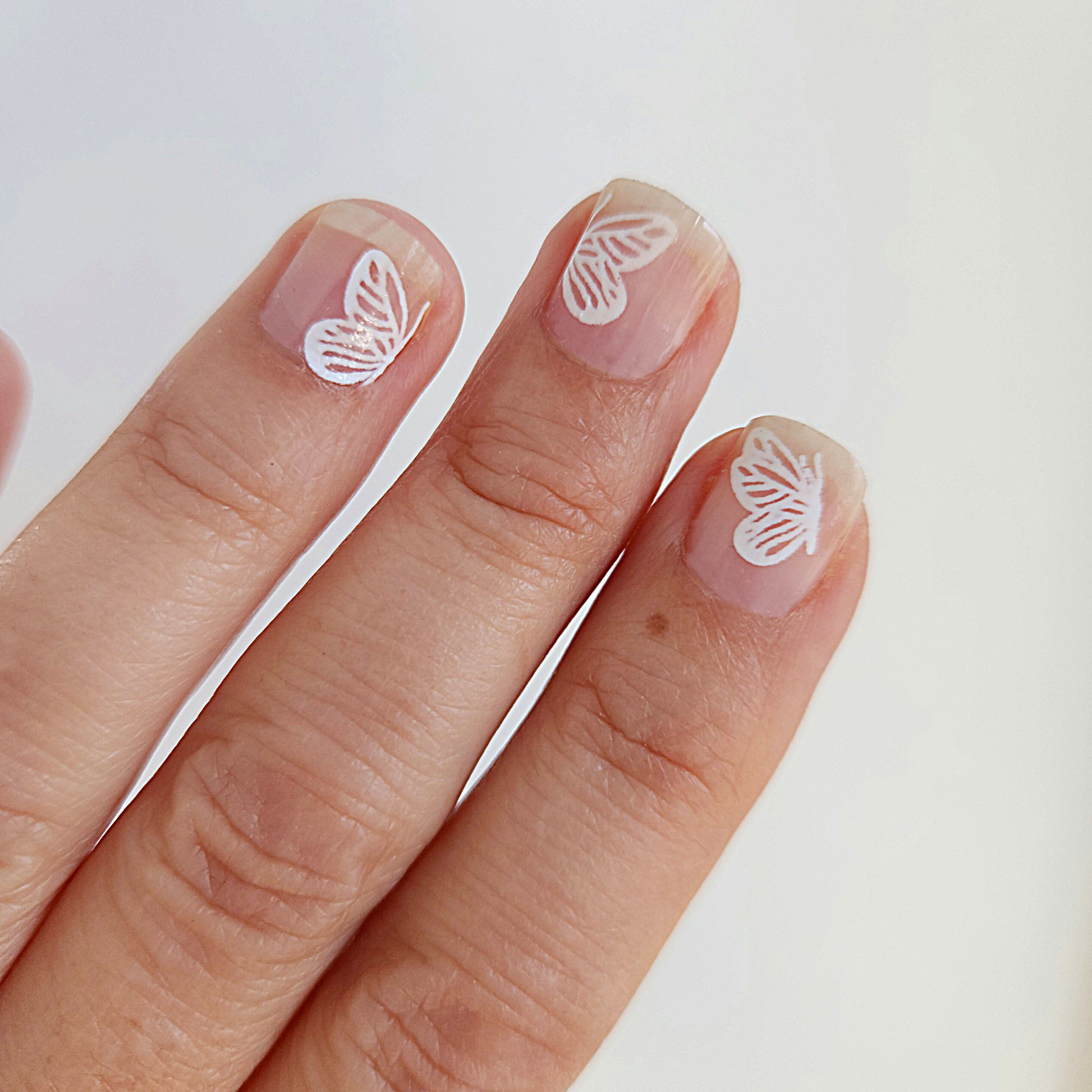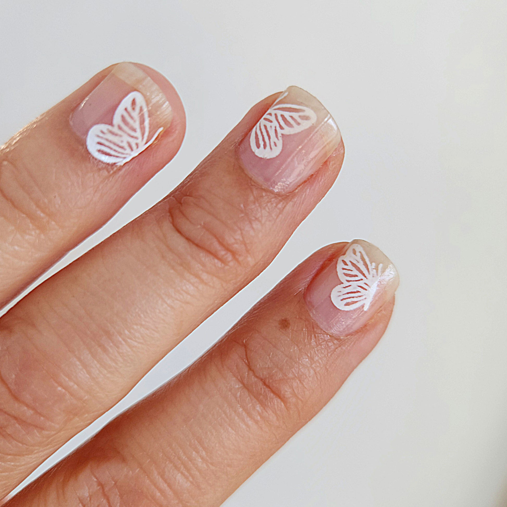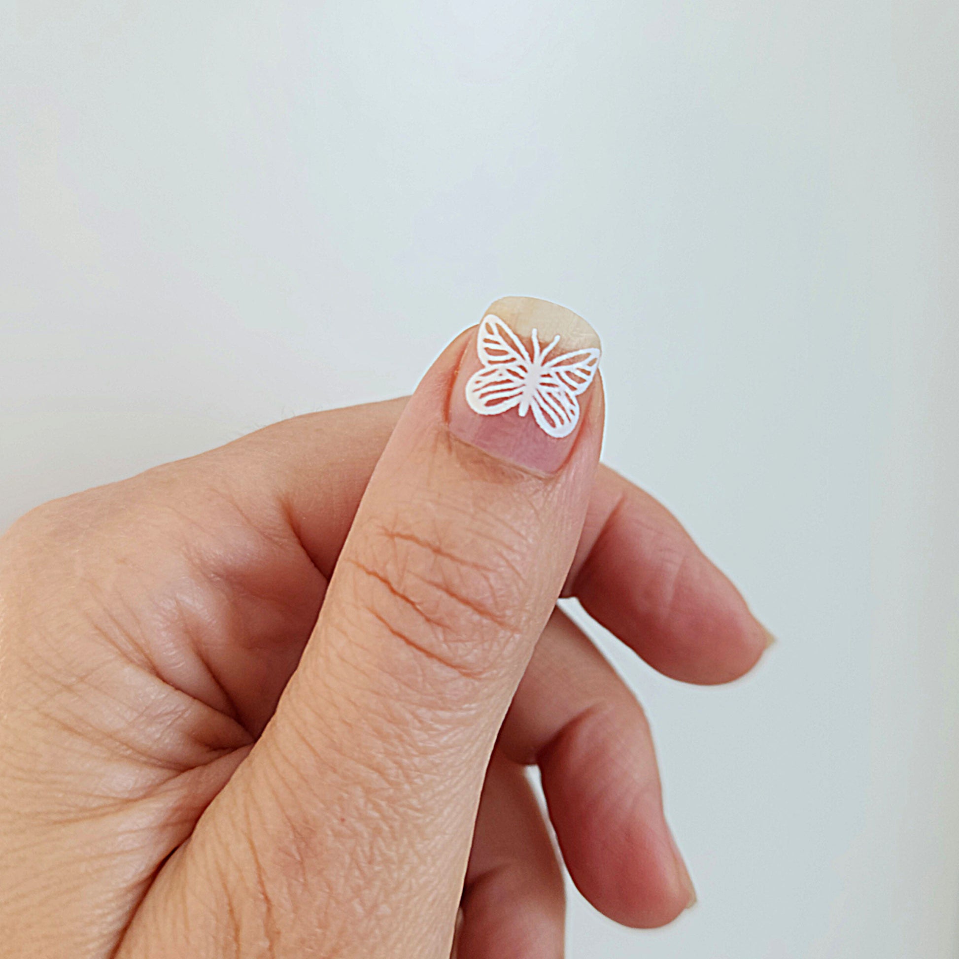 autocollants à l'eau de papillons blanc pour nail art. Transformez vos ongles en œuvre d'art virevoltantes avec ces autocollants papillons blancs résistants à l'eau !