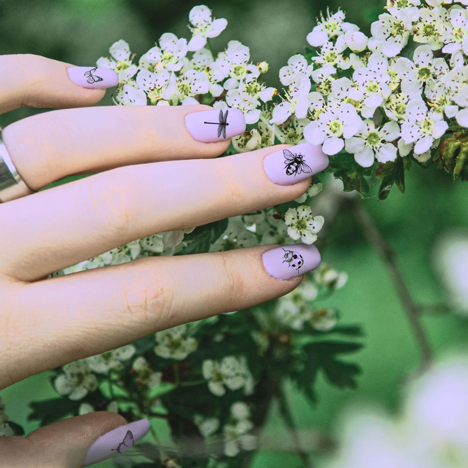 Autocollants pour ongles de papillon, abeille, lune et coccinelle à poser sur du vernis à ongles, des ongles naturels, du gel ou de la résine pour avoir une manucure unique. Faciles d'utilisation, il suffit de les décoller de la feuille, les placer où l'on veut sur les ongles et d'appliquer un vernis de finition.