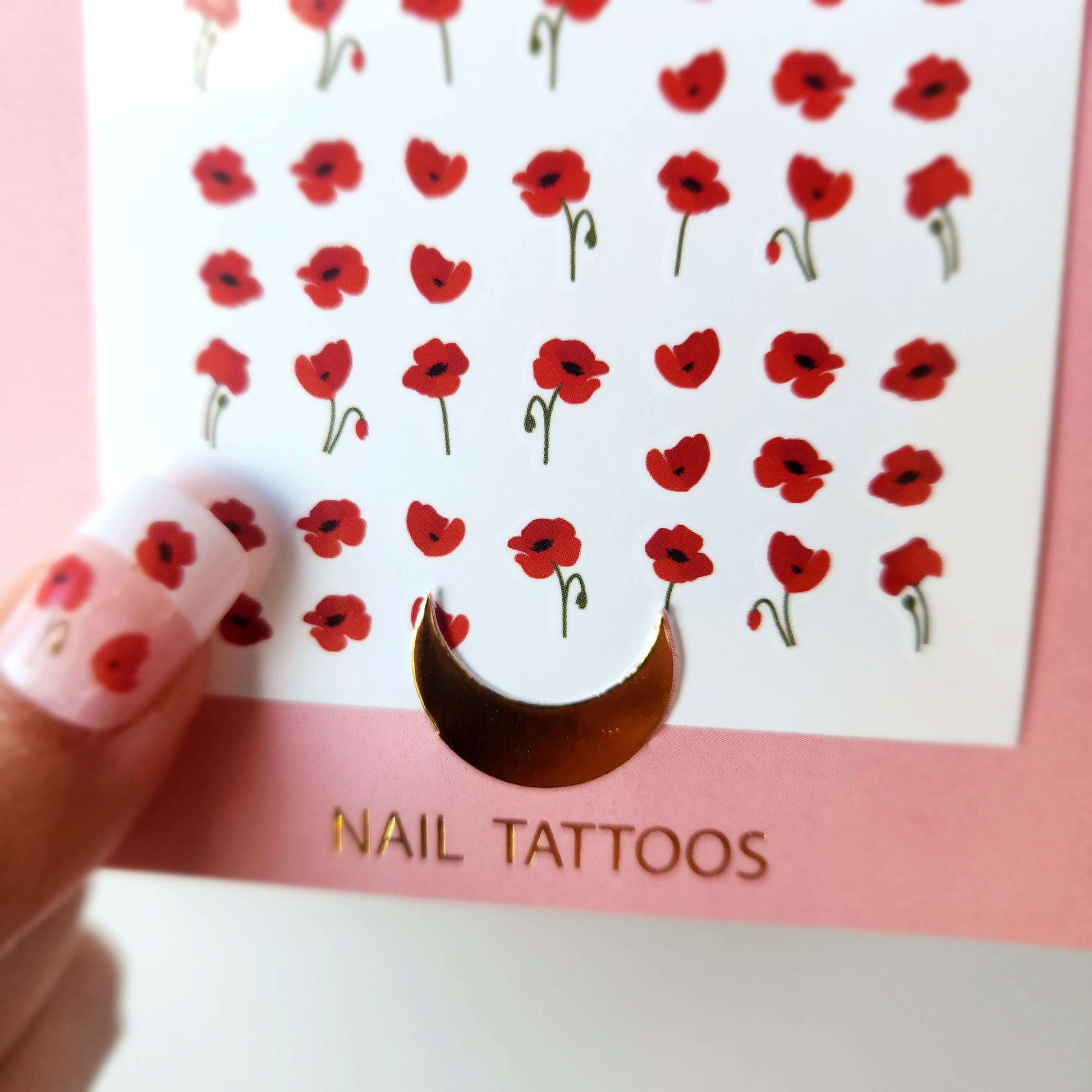 Autocollants coquelicots pour ongle très facile à poser comme un tatouage avec de l'eau.