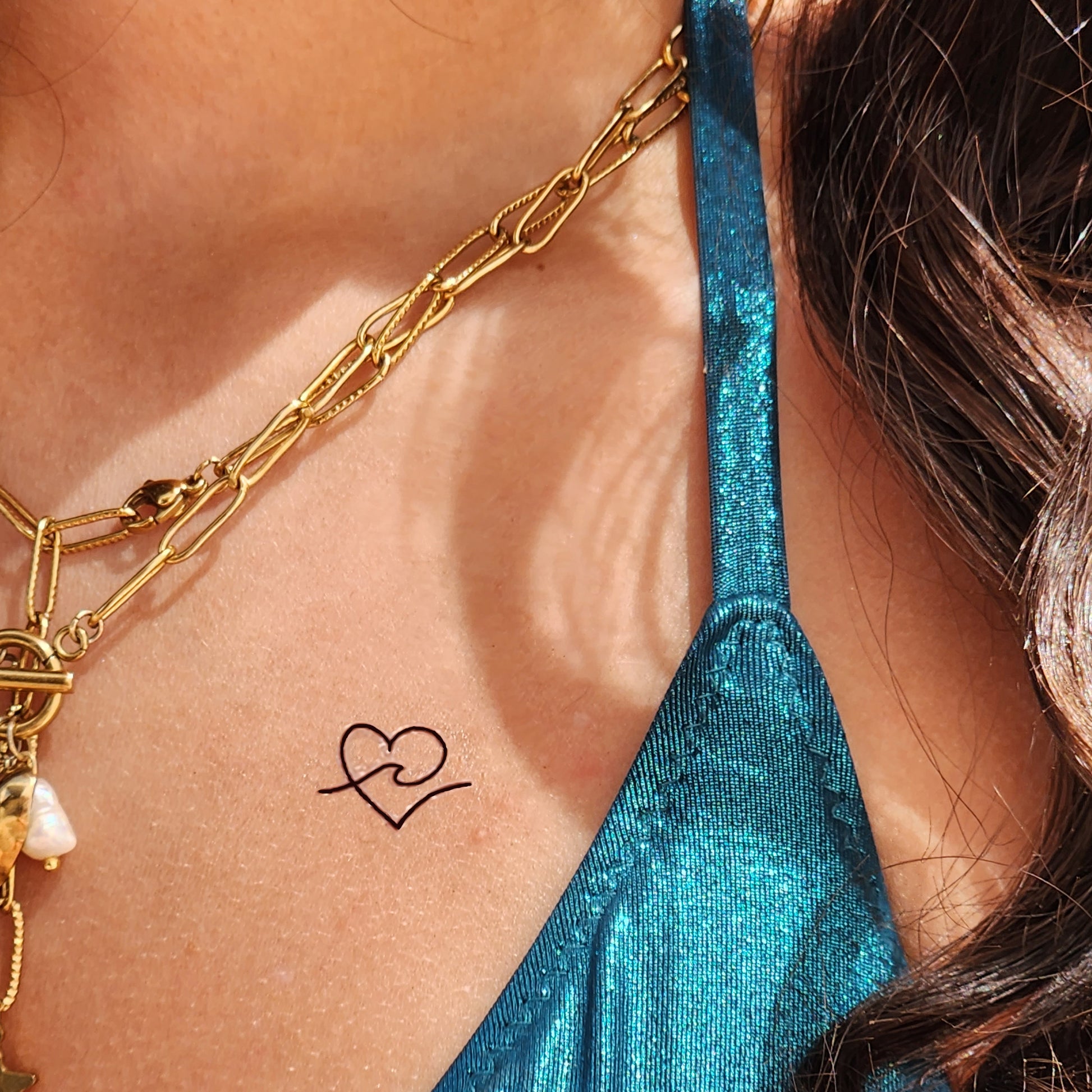 tatouage temporaire coeur et vague (set de 9)