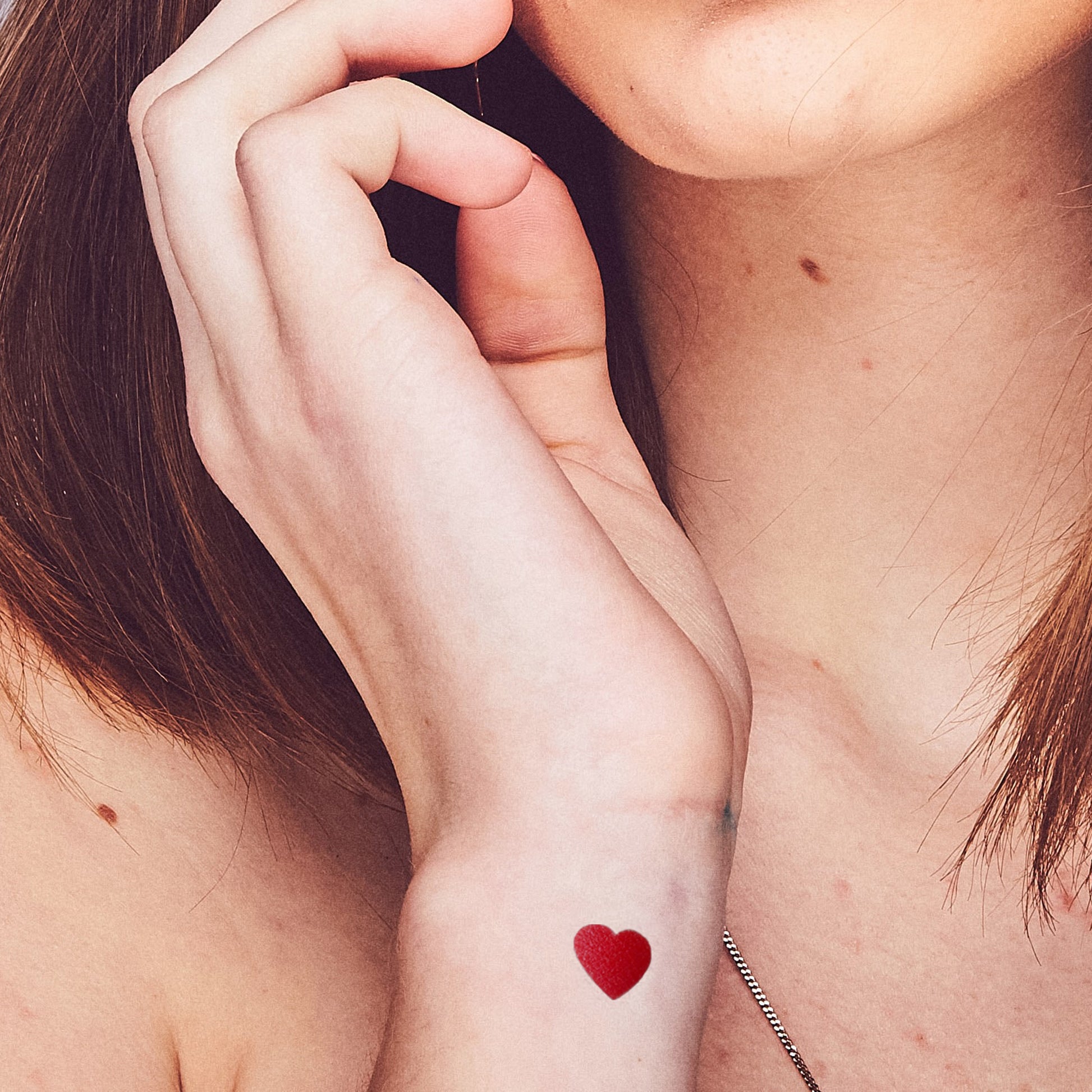 Petits tatouages temporaires (vraiment craquants avec le dessin de petit cœur d'une dimension d'environ 1 cm en rouge, à offrir à son Valentin ou pour soi même