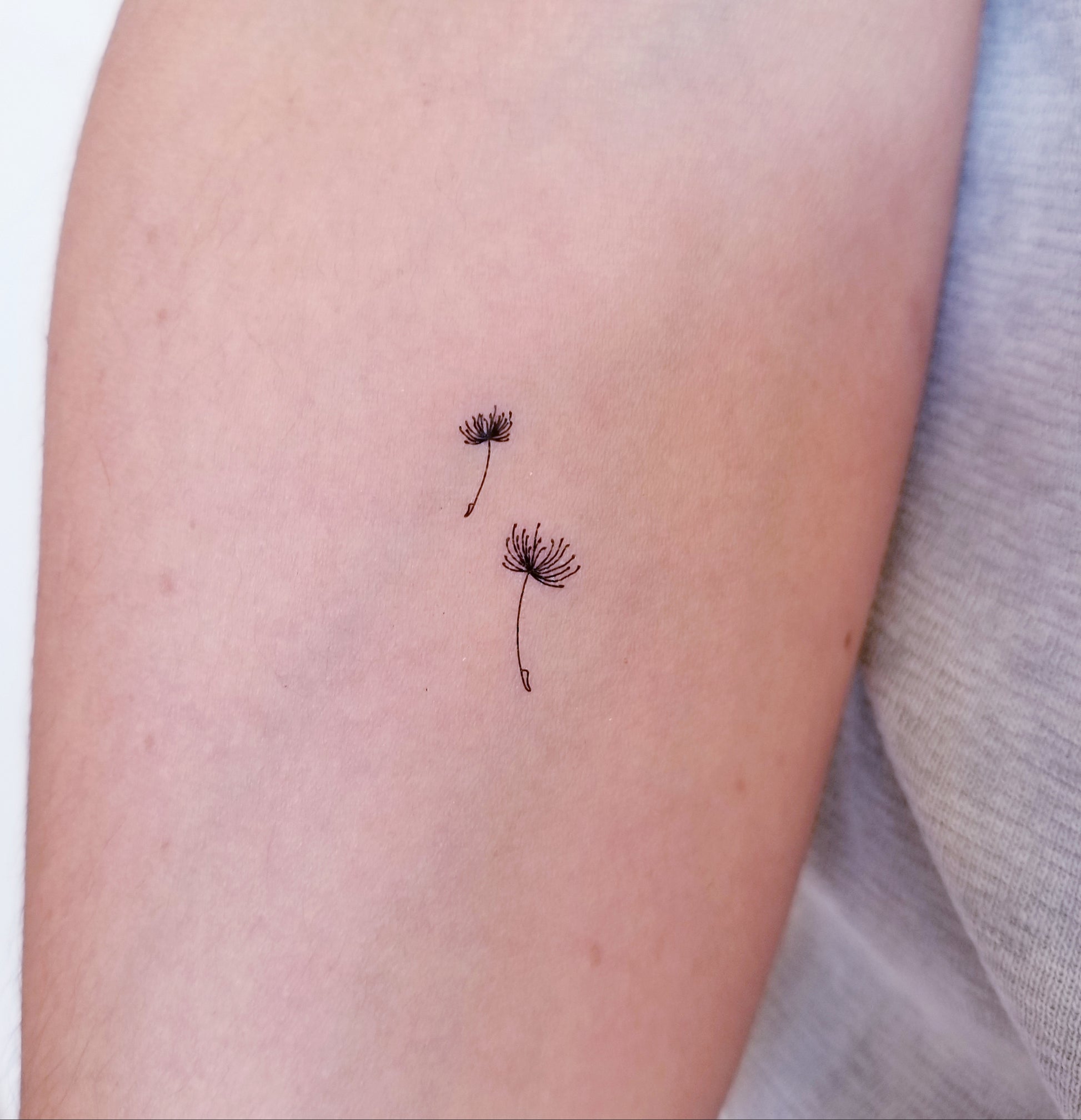 tatouages temporaires de deux aigrettes de pissenlit (3 sets de 2). Exprimez votre nature libre et aérienne avec ces tatouages qui évoquent la magie d'un pissenlit dispersant ses graines au gré du vent.