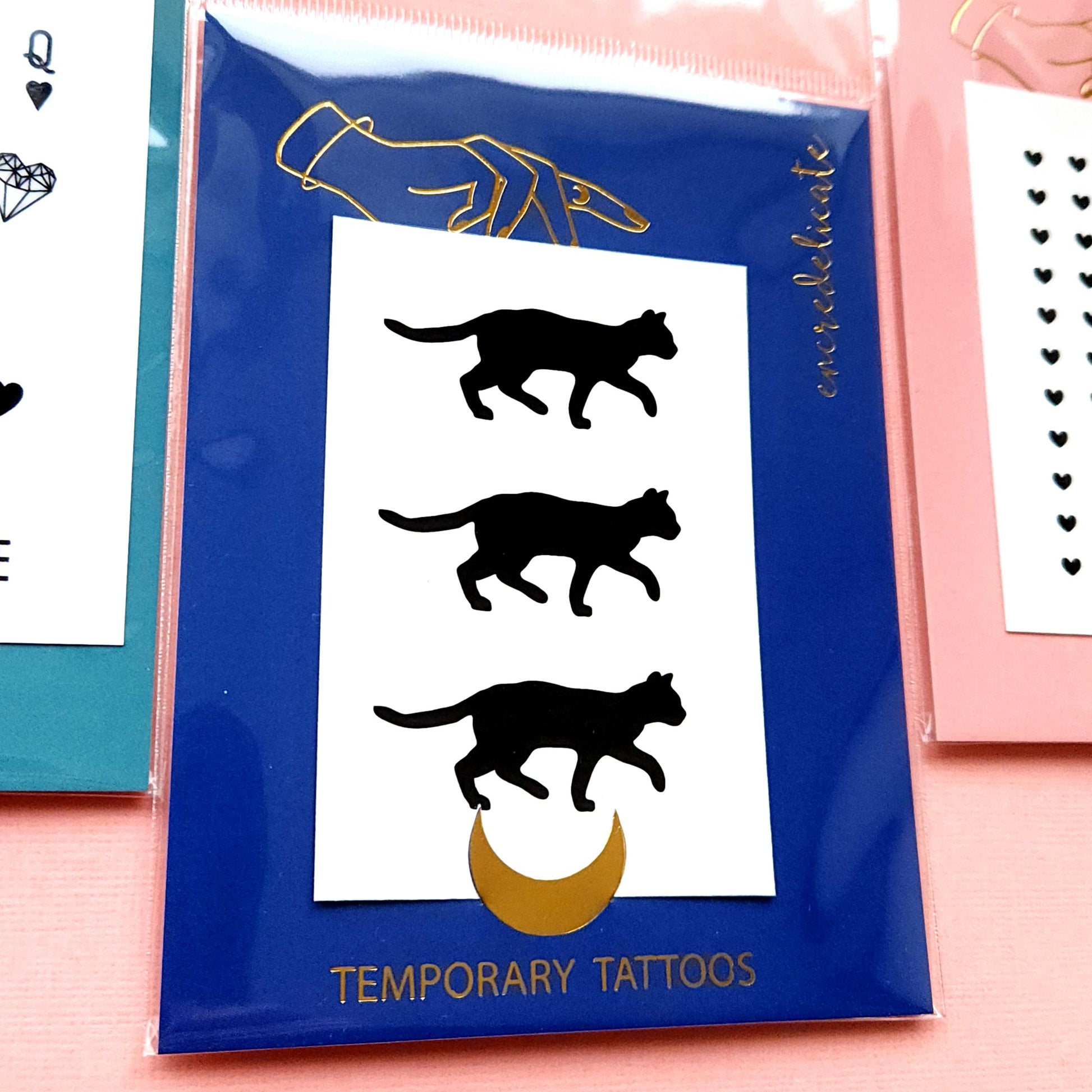 tatouage temporaire de silhouette de chat noir marchant (lot de 3)