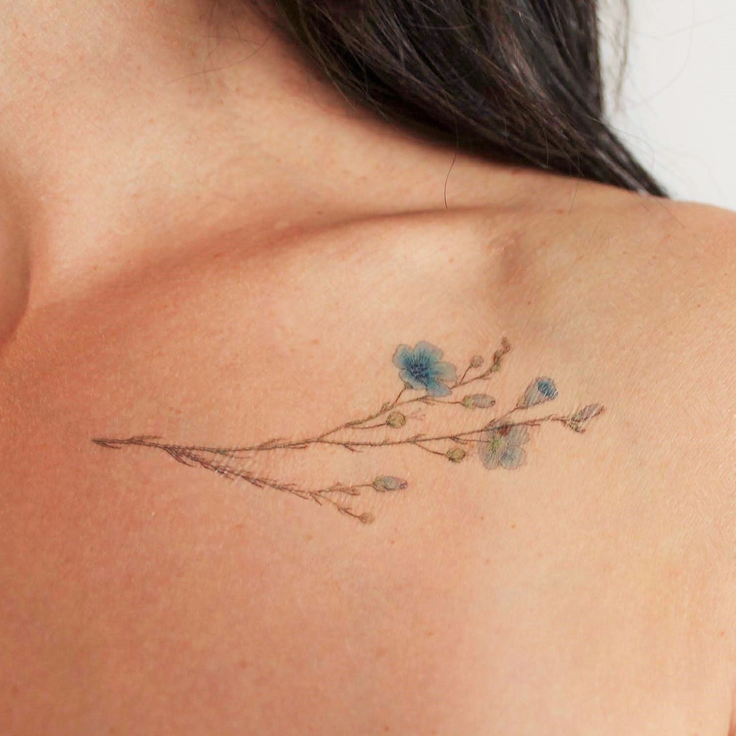 Tatouage temporaire de fleur sauvage bleue. 1 seule tige.