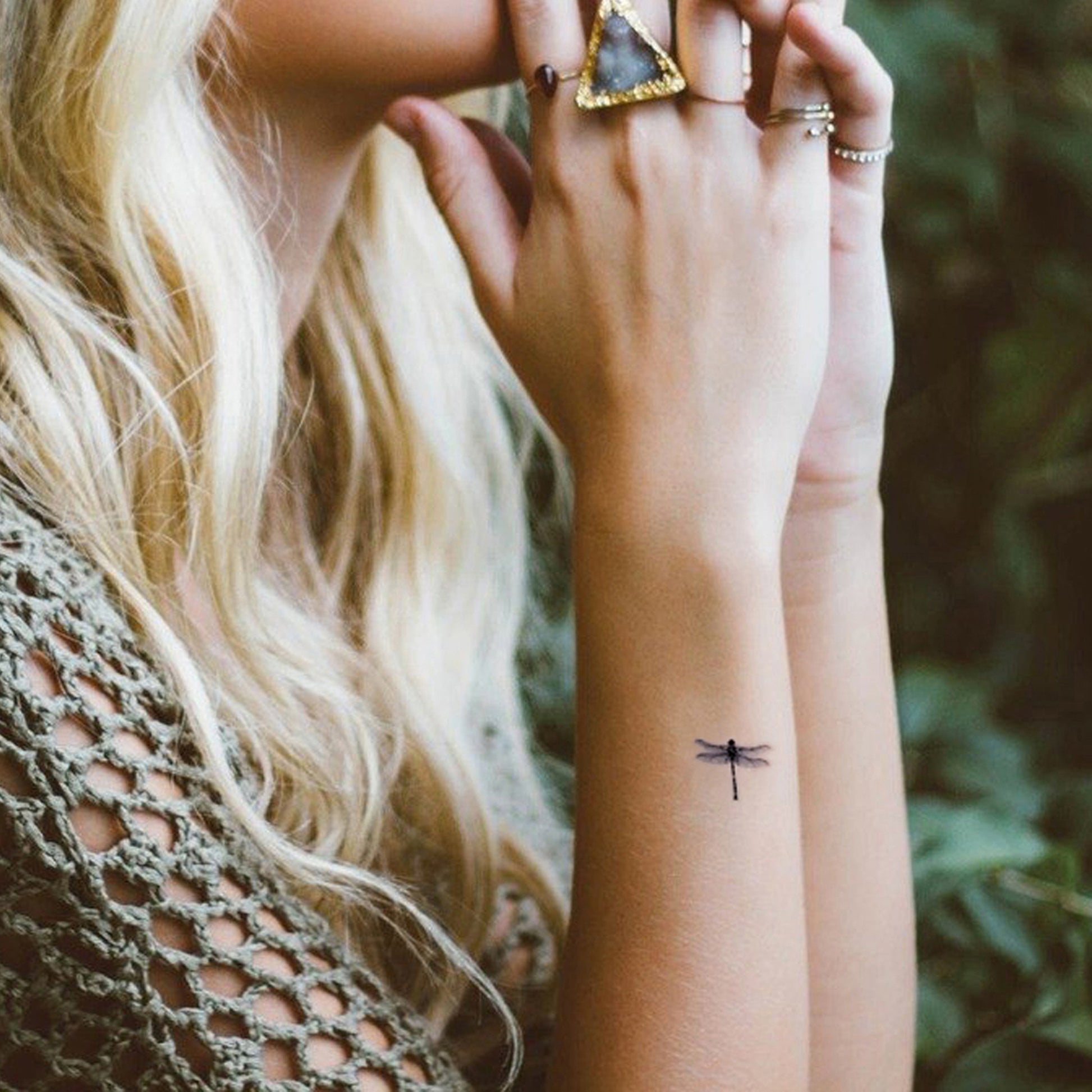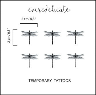 6 tatouages temporaires d'une libellule vintage. Dimensions environ : 2x2 cm chaque tatouage