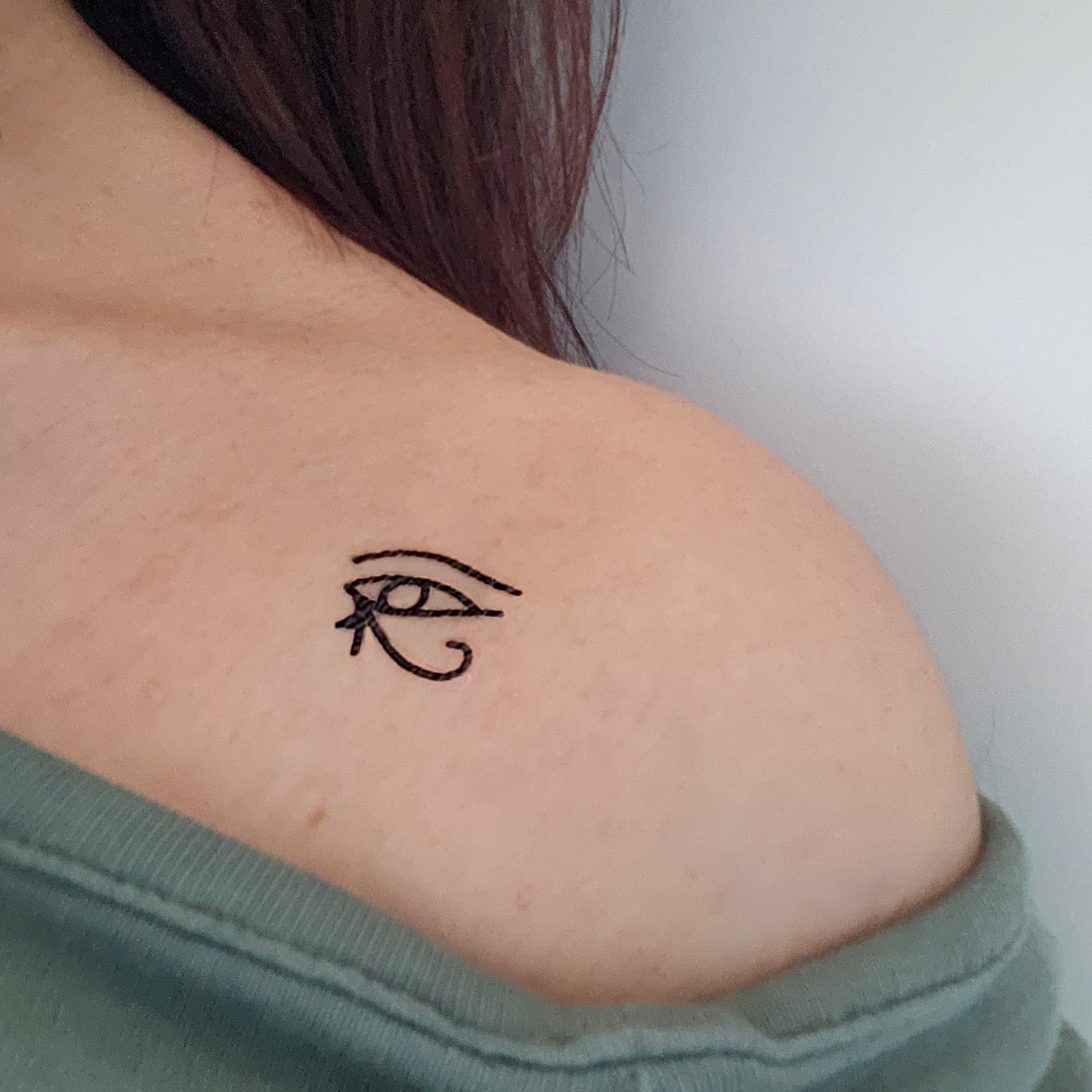 4 tatouages temporaires œil Horus. Ce symbole légendaire n'est pas seulement ultra stylé, il est aussi votre porte-bonheur personnel, apportant protection et bonne santé. Parfait pour une touche éphémère et envoûtante. Transformez votre look en un clin d'œil ! Tatouage éphémère d'environ 2 cm (0,6").