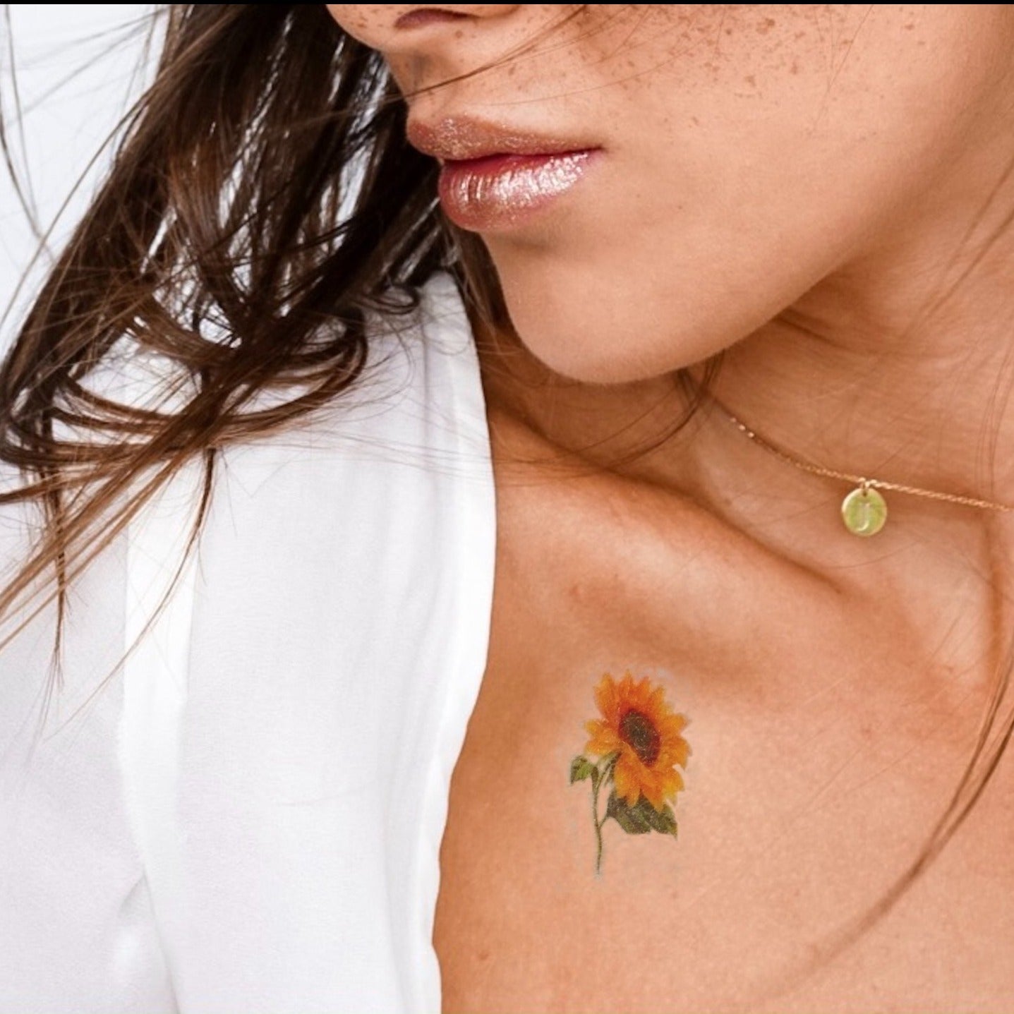 Le tatouage de roses est un des motifs les plus populaires pour les tatouages. Le tatouage du tournesol est le symbole du soleil et le mouvement perpétuel pour se tourner vers la lumière. Dans la culture chinoise, le jaune est associé au bonheur, à la vitalité et à l'intelligence. Si tu veux en essayer un, celui- ci est vraiment très réaliste avec un style vintage. Il deviendra ton accessoire indispensable pour les beaux jours ou pour un festival de musique.