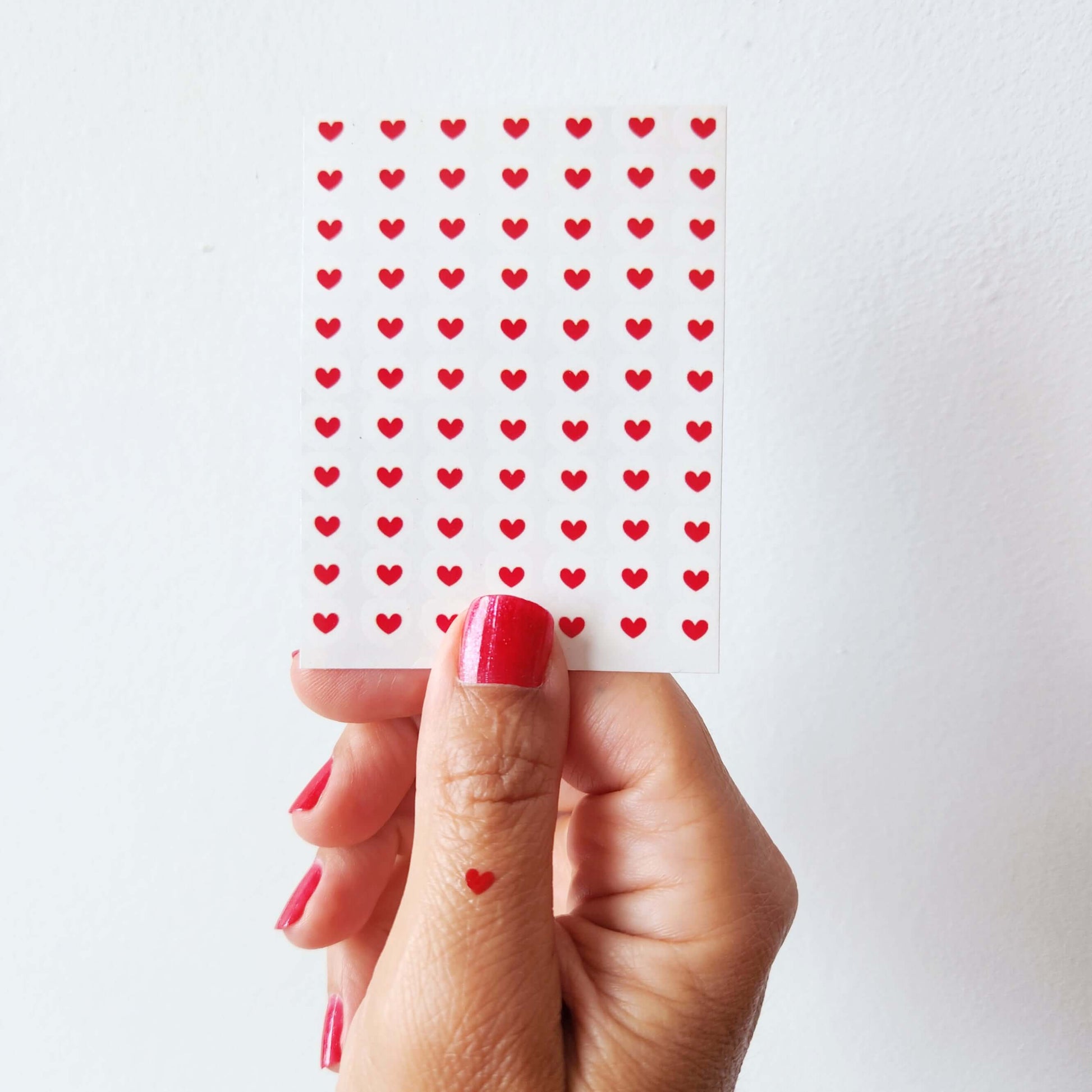 mini tatouages temporaires avec le dessin d'un coeur minuscule d'une dimension d'environ 3 mm en rouge, à offrir à son Valentin ou pour soi même