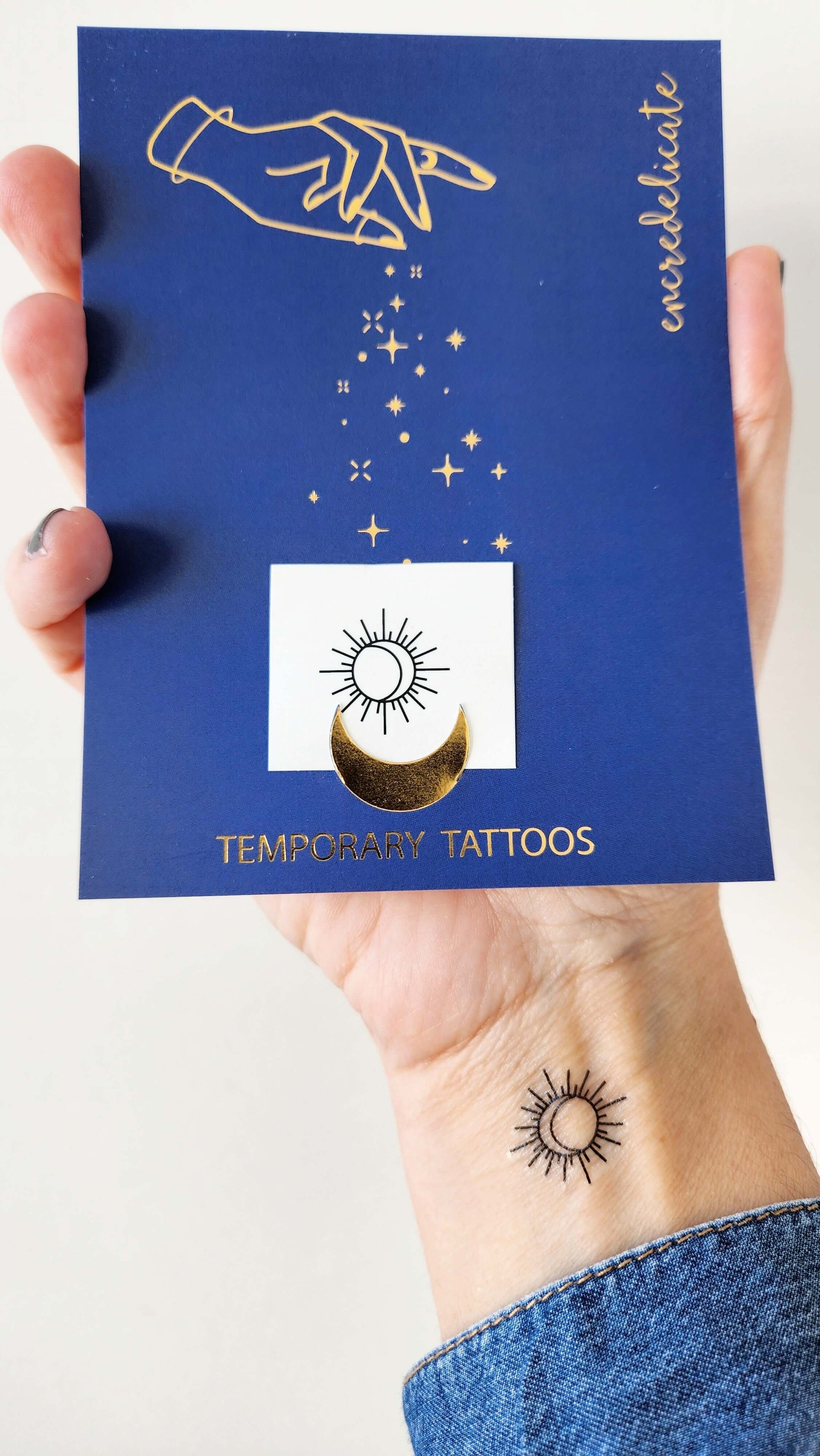 Tatouages temporaires minimalistes de soleil et de lune (set de 6)