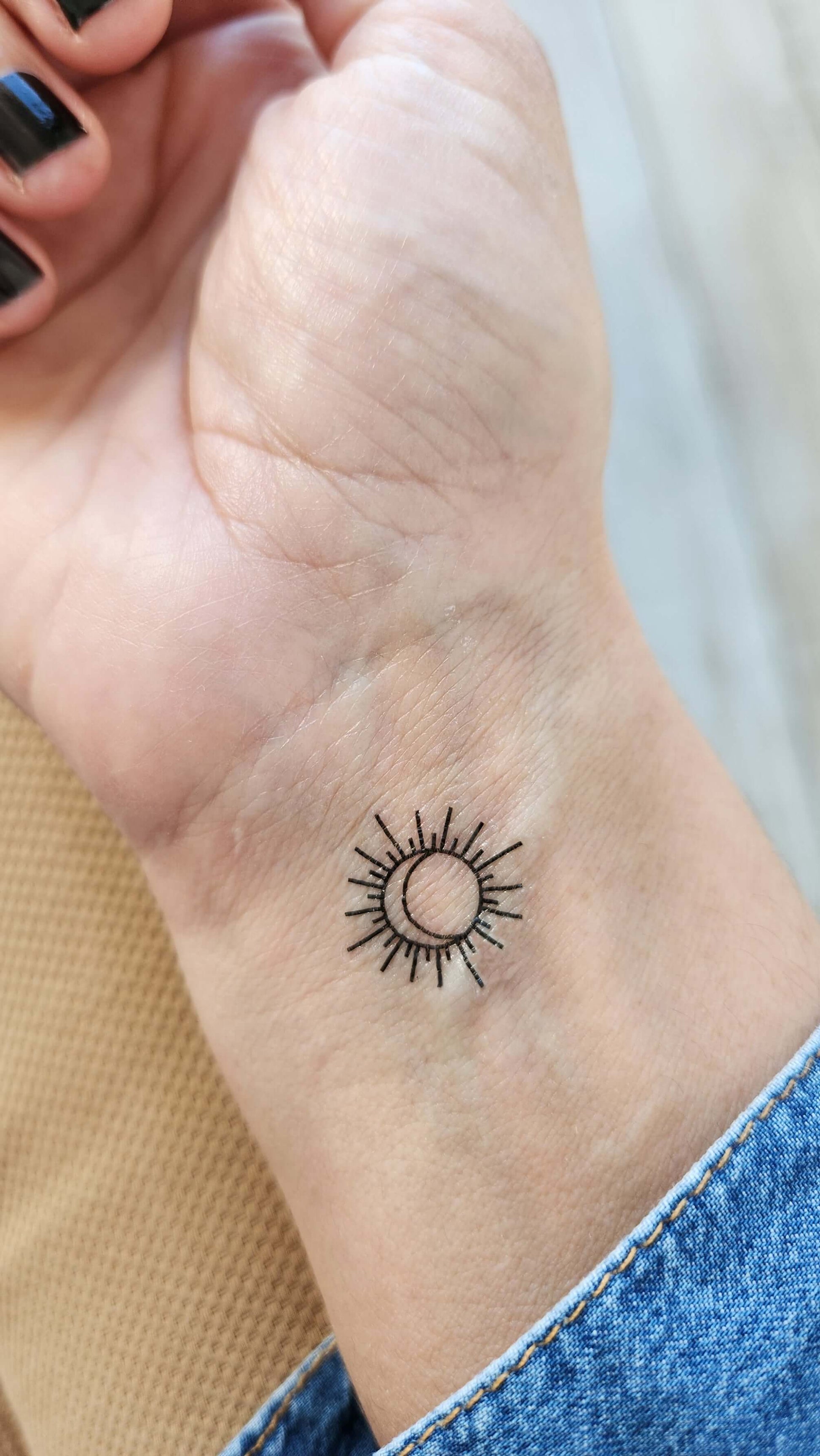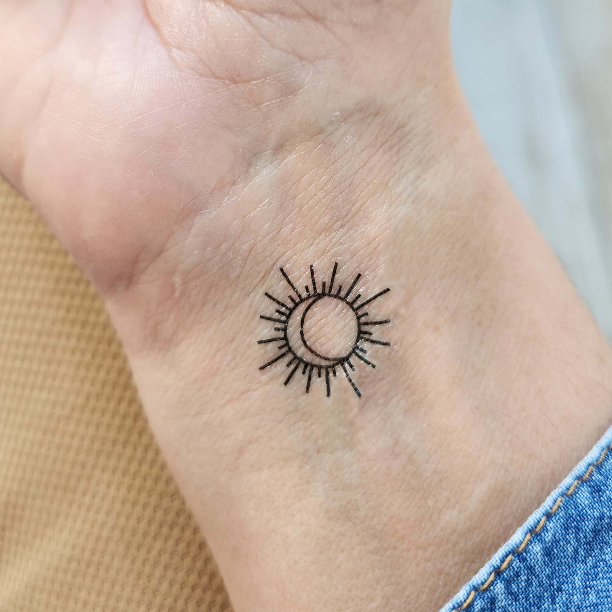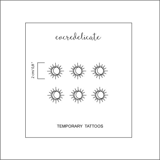 Tatouages temporaires de soleil et de lune minimalistes (set de 6). Découvrez l'harmonie céleste sur votre peau avec nos tatouages temporaires minimalistes ! Dimension environ 2 cm (0,8").